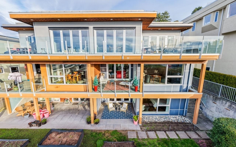 Sophisticated coastal living in custom-built executive townhouse with ocean views. Designed for elegant daily living & effortless entertaining, this 3 level home offers a private elevator & radiant floor heat. Open concept main level features hardwood floors, gas fireplace, fresh paint, powder room & covered patio ideal for sunset cocktails. Chef’s kitchen showcases high end appliances, large island, spacious walk-in pantry & ample cabinetry. Ground-level offers 2nd patio plus bedroom with Murphy Bed & private en-suite. Serene Primary Suite retreat with large walk-in closet & spa-inspired en-suite with level-entry shower. 2 parking spots, EV charging, workshop & locker. Pets allowed. Quiet street, fenced yard, steps to Marine Dr dining, shops, Pier & Promenade. Open House Sat 2-4pm