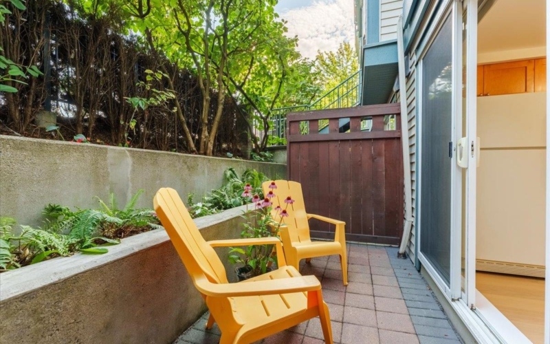 Sought after Lolo's vibrant & popular neighbourhood! This Cozy & Chic 2 bed, 2 bath Townhouse provides a smart open-concept, well-designed floorplan w/ an abundance of natural light featuring a cozy gas fireplace. Enjoy ample room for cooking in the well-equipped kitchen, which flows effortlessly to one of the two patios for BBQing and entertaining! Upstairs, has a spacious primary bedroom w/ private Juliet balcony surrounded by privacy trees and Mtn views. Just down the hall, the 2nd bedroom for a cozy children's room, guest room or a functional home office. Recently updated flooring, paint, and blinds. Well-maintained building includes 1 parking, 1 storage, & pets allowed. By appointment.