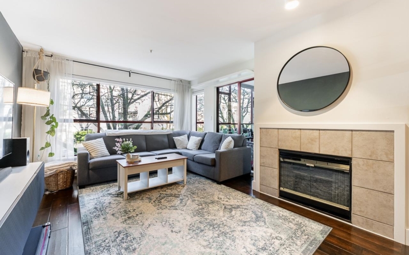 Bright and spacious 1 bedroom plus large solarium in the heart of Kitsilano. This open concept layout offers seamless flow between the living and dining areas, complete with a cozy gas fireplace and abundant natural light. Enjoy newer appliances and updated flooring, adding a fresh, modern feel throughout. The kitchen offers plenty of cabinet storage, while the oversized bedroom provides a comfortable retreat. The generous solarium is perfect for a home office or flex space. Includes in suite washer and dryer, secure parking, and a storage locker. Steps to shops, cafés, and restaurants.