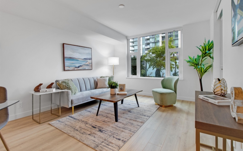 A RARE 2-LEVEL 3 BED + DEN Concrete CITY HOME at Apex in vibrant Seylynn Village. Enjoy the comfort of townhouse living with the convenience of luxury tower amenities. Bright open layout with a modern kitchen featuring integrated Liebherr & AEG appliances, European cabinetry, quartz countertops and waterfall island. Three spacious bedrooms plus versatile den and 3 FULL bathrooms, including a spa-inspired primary ensuite with double sinks. Full access to the 14,000 sq.ft. Denna Club with pool, gym and lounge. Concierge 7am-11pm. Steps to parks, trails, cafes, shopping and Lynn Creek Rec Centre. Includes EV parking and a secure storage locker on L1.
