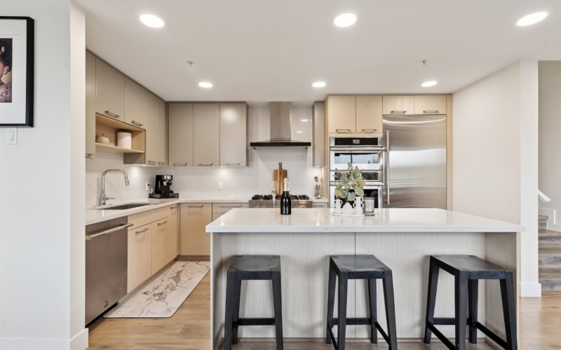 Experience elevated living in this BEACHBOROUGH penthouse offering 1,700+ SQFT of refined elegance. This 3-bed, 2-bath + den residence showcases premium JennAir Pro appliances, a 6-burner gas cooktop, integrated fridge, walk-in pantry and a spacious laundry room. Enjoy an entertainer’s 500 SQFT glass-enclosed rooftop deck with breathtaking ocean and mountain views, plus two additional balconies off the split floor plan. With AC, two side-by-side parking stalls, and Green-Certified construction, this home blends luxury and sustainability. Steps to the beach, top schools and Ocean Park shopping.