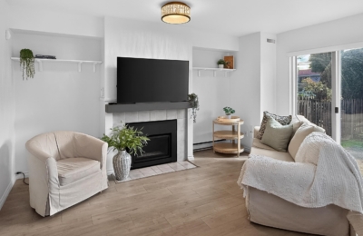 The perfect family home! This beautiful townhouse features 2 bed + den, 3 bath and low strata fees offers the privacy and feel of a detached home — complete with an attached garage, abundant natural light, and a private yard. The king-sized master includes an ensuite while the den offers utmost flexibility.Two dozen thoughtful upgrades include new water heater, new appliances, energy-efficient fireplace insert, fixtures, fresh paint, and added storage. Other upgrades include smart thermostats, ceiling fans, controls, and high-security locks. Exceptional walkability and location—with easy access to Vancouver, UBC, and Surrey. Steps to Sungiven Foods, Tait Waterfront Park, Fraser River, Tait Elementary School, and transit. Bridgeport Station, Costco, Superstore, Ikea, Walmart, HJ Camb