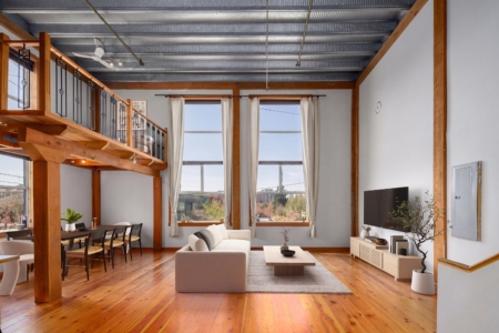This 2 bedroom live/work loft space at The Workshop is a post-industrial style gem. Over 1500 sqft of bright open-plan living space is accentuated by soaring 17ft ceilings, gorgeous millwork and expansive windows with beautiful outlooks of tree-lined streets and cityscape. Inside, natural fir posts & beams and wide-plank flooring imbue the space with warmth, as does the welcoming gas fireplace. Other standout features include glass flooring in the 2nd floor office nook, gourmet kitchen with island and wrought iron railings. Heated slate flooring in the main bathroom, solar-reduction windows, double-insulated walls and large ceiling fans offer additional comfort. Ideally situated on the quiet SW corner of this concrete & steel building, enjoy living in vibrant Strathcona. 1 secured parking.