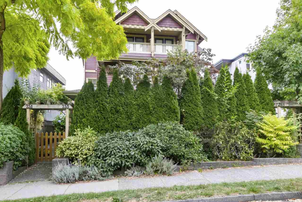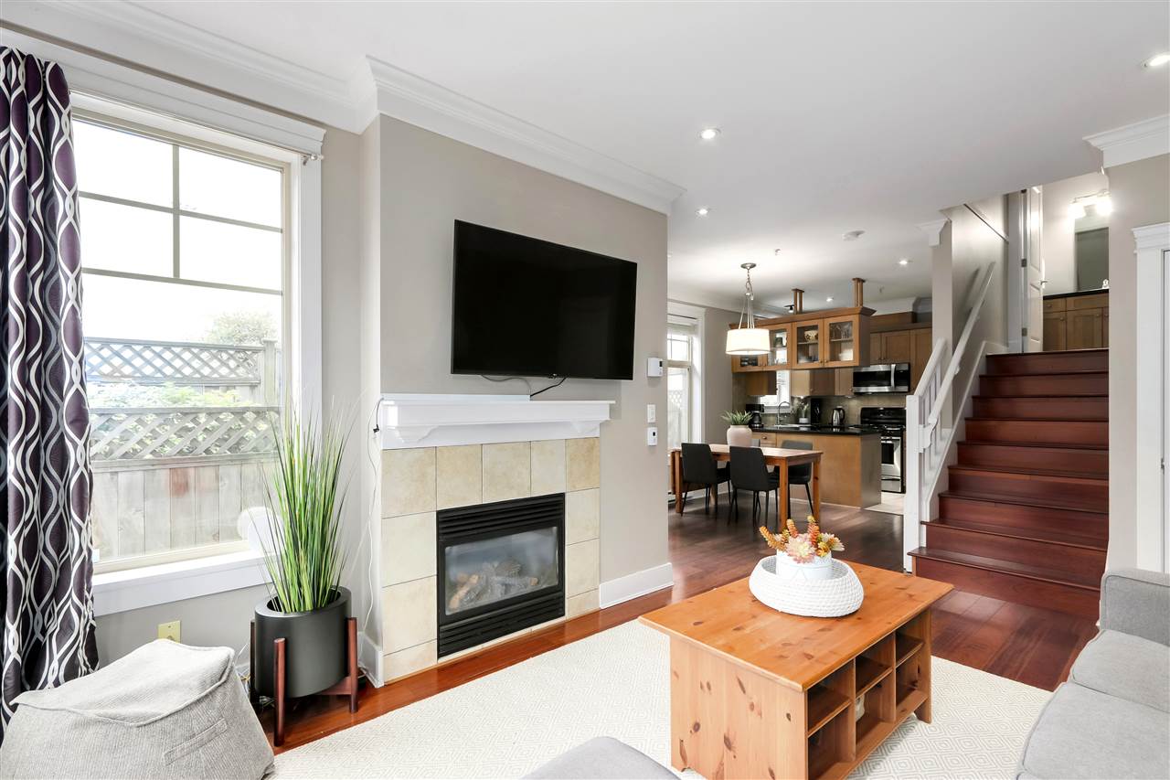 Rare family-sized home in the heart of hippest, happiest Mt. Pleasant! This European-built, craftsman-style, NE corner townhome features 3 bedrooms, 2.5 baths and 2 den/flex areas (perfect for home offices) with a large, private, fenced patio area. The main floor is a bright, open plan, with 9 ft ceilings, shaker kitchen cabinets, gas stove & gas fireplace. The bedrooms are split with 2 on one level and a magnificent master suite on the top floor with private balcony, walk-through closet and spacious ensuite. Tons of storage in crawl space. Garage parking. This well-run, 4 unit strata allows pets and rentals. Close to shopping, transit, restaurants, so much more. This home has everything!