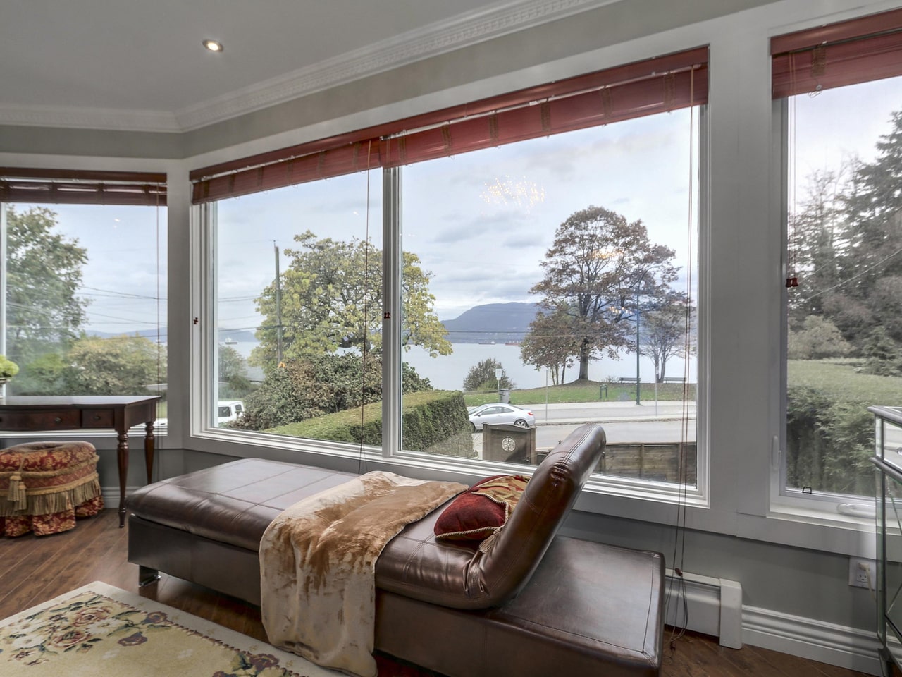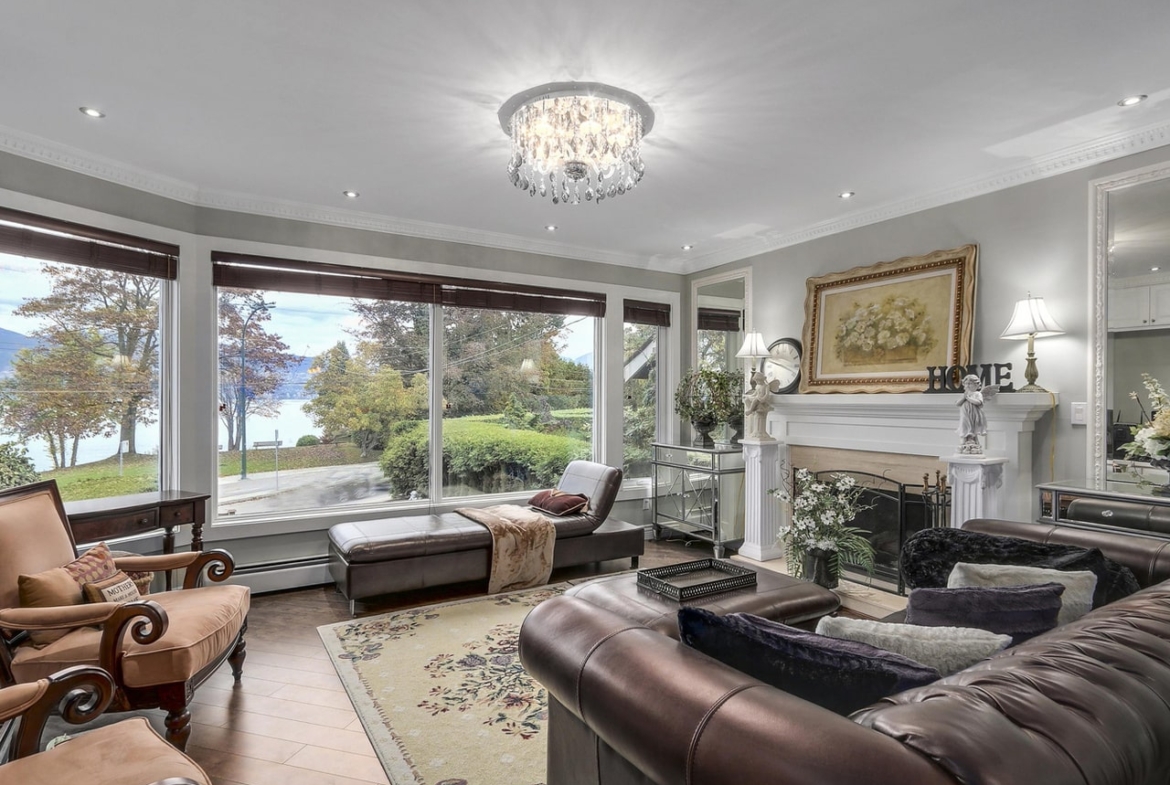 Premier Waterfront! Situated across the park and boasting the most sensational WATER VIEWS! Completely and stunningly renovated 2 bdrm & den (3 bed), family rm, 4 bathrms. Ideal main flr w/multi-entertainment/media rm complete with bar. Spacious 2nd level with views from every principal room! Warm sunken living room, f/place, open dining rm. Thermador Pro custom designer kitchen with oversized centre island, eating area and breakfast bar. Gorgeous picture windows, wood flooring, high end finishings. Romantic master bdrm, ensuite with soaker tub, private shower, balcony. Private south yard, deck, front yard, roof top deck! Attached garage. Location 10/10! Rare VIEW homes as this are seldom introduced to the Vancouver market.