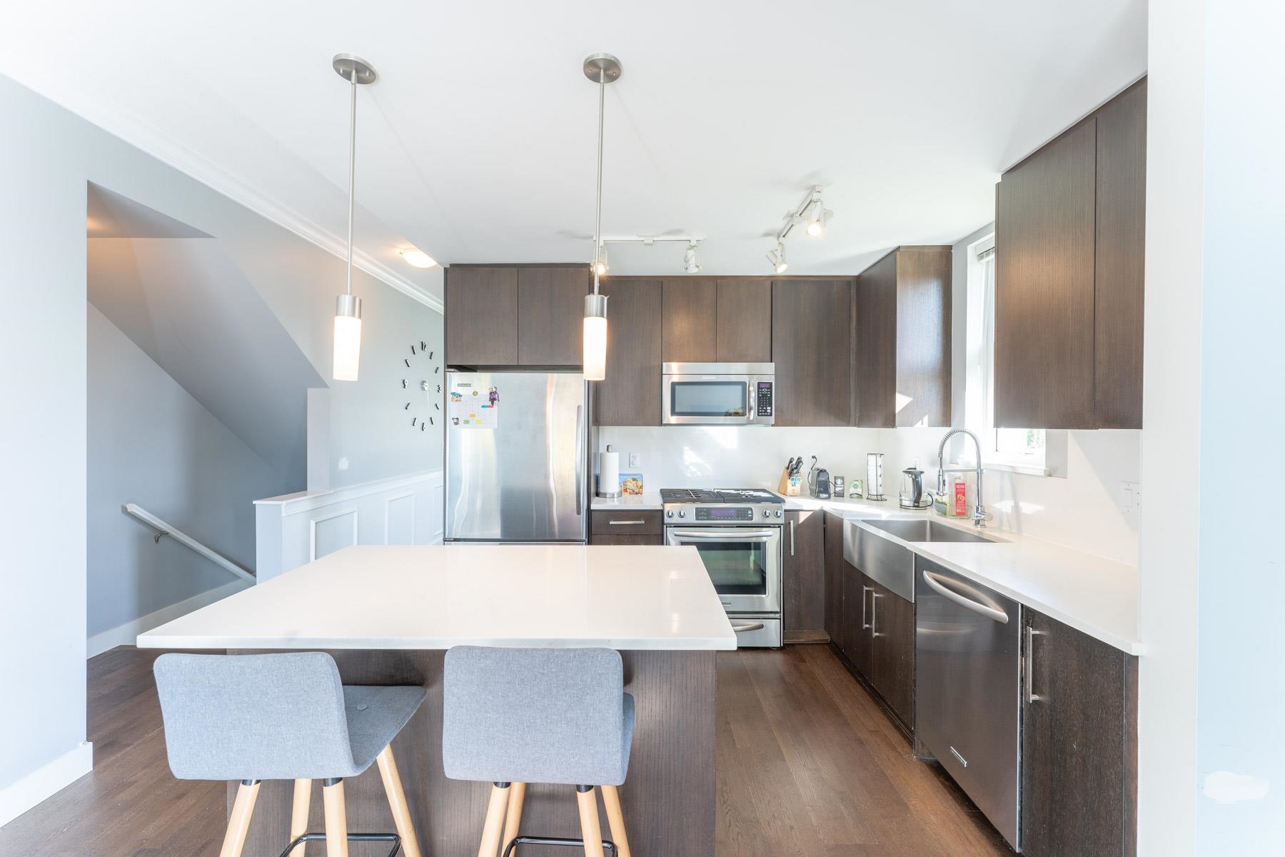 MASSIVE PRIVATE YARD! This end unit townhouse gives you the longed duplex feel with a single family sized yard of over 1100sq.ft of your own greenery Haven! Rare 4 bed and 3 bath totalled over 1,700 s.f. of spacious living ideal for a growing family without the extra hassle of a detached home. Very well kept inside out with tasteful wainscoting throughout the living room. Three desirable exposures to East, South and West ensuring all day sunlight with bonus tree line views from living and master bedroom. Downstair has a separated bed+bath perfect for in-laws and guests. Situated on 12 acres of park-like secluded neighbourhood of South Slope. This community has it’s own clubhouse, playground, pathways and a water pond for a family oriented living.