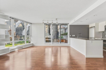 Spacious 2 Bed + Flex Corner Unit w/ Huge Private Patio – Steps to Yaletown & Amazon Quiet inside-facing 2BR + flex, 1BA home offering 933 sq ft plus a 147 sq ft private patio. Functional c…
