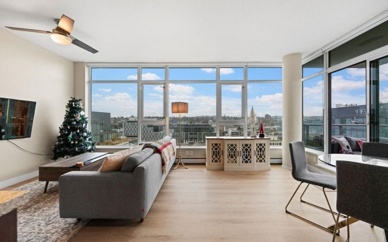 Step into this rarely available Olympic Village penthouse showcasing spectacular, unobstructed city views! This modern oasis offers over 1,100 sq. ft. of bright, open living with stunning s…