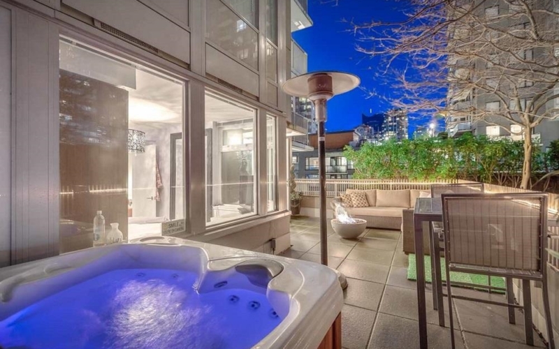 This Yaletown Vancouver furnished condo rental at The Donovan is a rare find with a luxury patio and an exclusive hot tub. This 1 bedroom and den corner suite boasts sweeping hardwood floor…