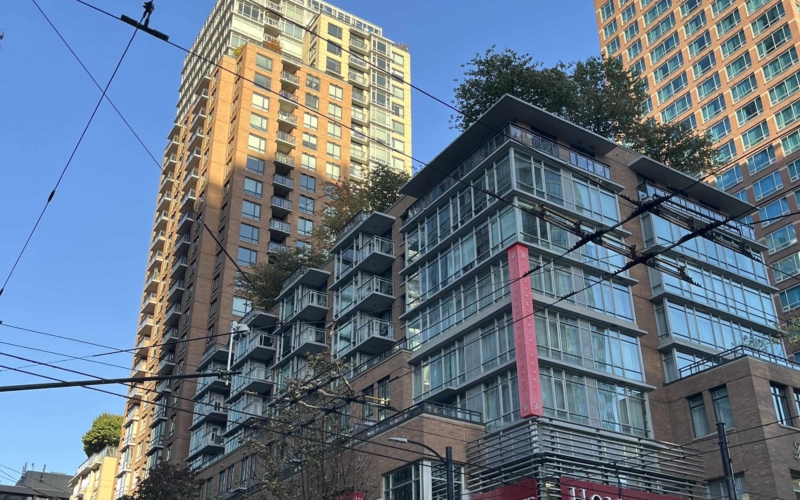 Welcome to this spacious and bright upper floor 1 bedroom + den corner home in the Mondrian 1 by Bosa, perfectly located at the edge of Yaletown. With a unique floor plan offering flexibili…