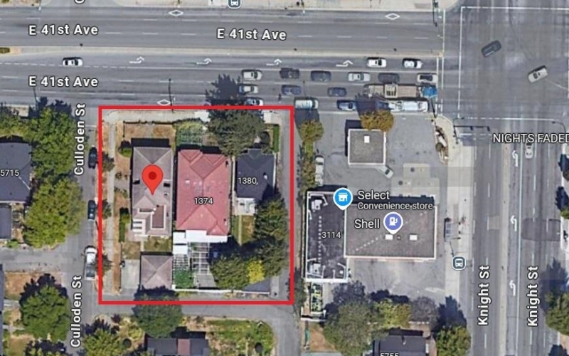 Land assembly opportunity! To be combined with 1374 E 41st Ave and 5768 Culloden Street. Two suites building very low holding cost. Central location on Knight and 41st. Close proximity to b…